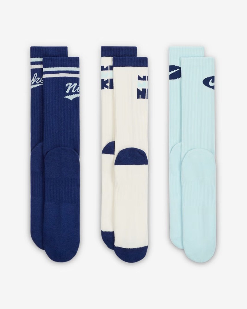 ¿Buscas medias esenciales cómodas y frescas? El pack de 3 Nike Everyday Plus Crew en azul ofrece suavidad, soporte y tecnología de secado rápido para el día a día. Ideales para running, gym o uso casual, su acolchado estratégico protege puntos clave del pie, mientras el diseño clásico combina con todo. ¡Tu elección perfecta para confort y estilo en cada actividad!